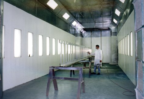 - 4 wet spray paint booths (15′ x 15′ x 60′ max. capacity)